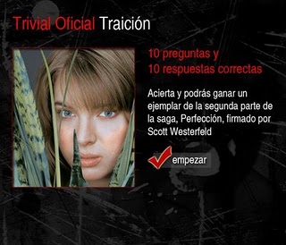 Las editoriales se estrujan la cabeza para promocionar sus libros. Todo vale. Especialmente en la red. Vean esta original iniciativa de Montena para la trilogía de Westerfeld (aquí les hablé del primer tomo). Se trata de un trivial en Facebook.